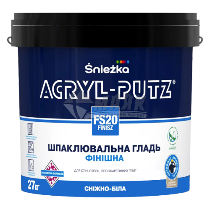 Фінішна акрилова шпаклівка Sniezka Acryl-Putz FS20 призначена для оздоблювальних робіт зі створення ідеально рівних поверхонь стін, ніш і стель на кінцевих етапах ремонту. Підходить як для згладжування машинним способом, так і ручним. На відміну від традиційний гіпсових сумішей тривалий час зберігає консистенцію, завдяки чому з'являється можливість планувати розмірену роботу. Легко піддається пост-обробці. Товщина нанесення одного шару: 1 мм. Витрата суміші при рекомендованій товщині: 1 кг/м². Фінішна акрилова шпаклівка Sniezka Acryl-Putz FS20 — вибір справжніх майстрів.